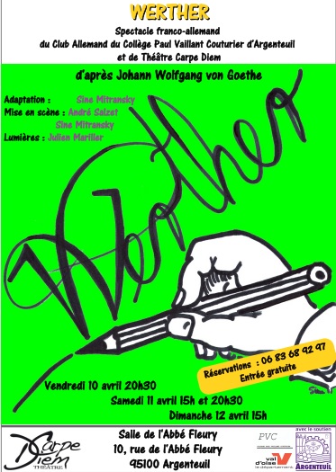 Une quinzaine d’élèves germanistes de tous les niveaux du collège (6e – 3e) a travaillé d’octobre 2014 à avril 2015 pour mettre en scène une adaptation des « Leiden des jungen Werther » de Goethe.